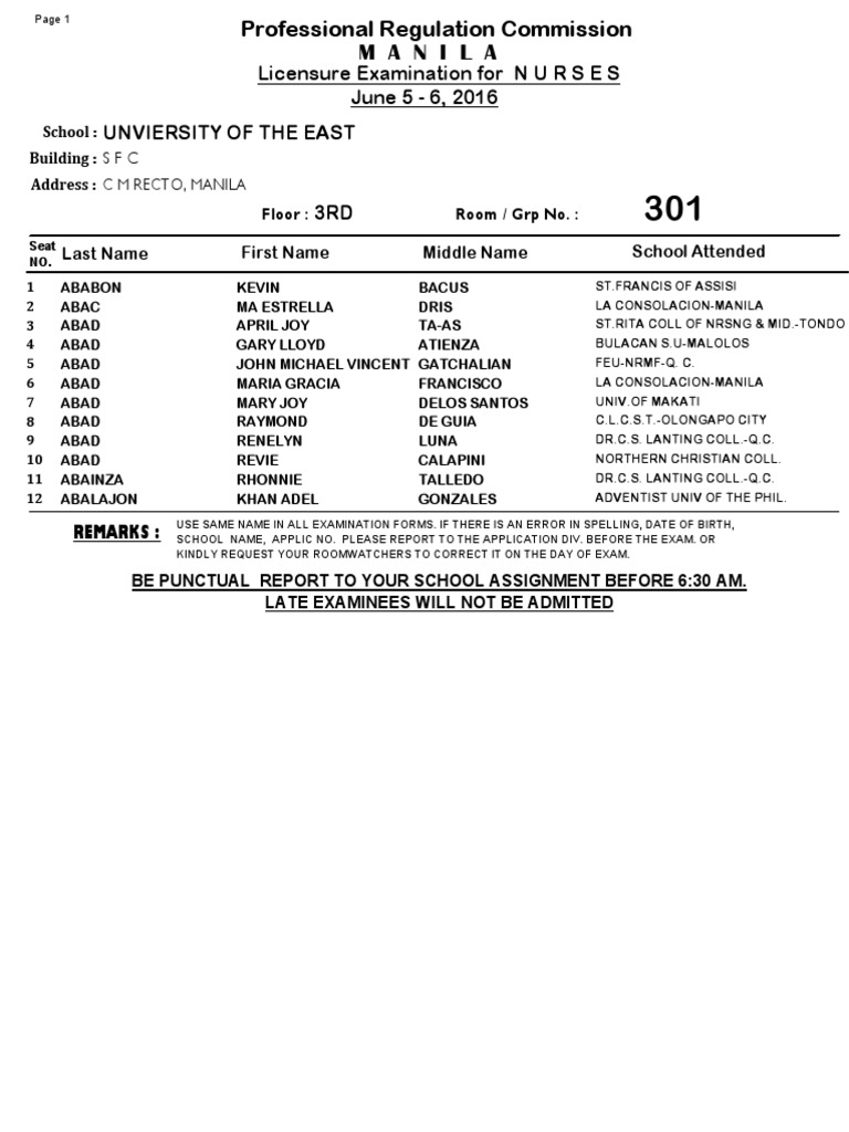 manila room assignment june 2016